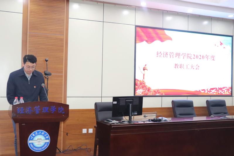 2021年4月21日下午15时,经济管理学院工会委员会在31号楼学术报告厅召开会员大会进行换届选举,会议由学院党委副书记吴雷同志主持。