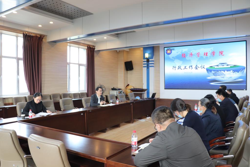 2022年9月29日上午,经济管理学院本学期第一次行政工作会议在31号楼312会议室召开。院长陈恒出席会议,副院长王君主持会议,各职能部门负责人参加会议。会议强调,要进一步提高统筹协调服务能力,全面提升管理工作水平,切实加强和改进学院机关工作作风,提高工作人员的综合素质,增强服务意识,规范工作行为,提高办事效率,推动机关工作的不断进步。