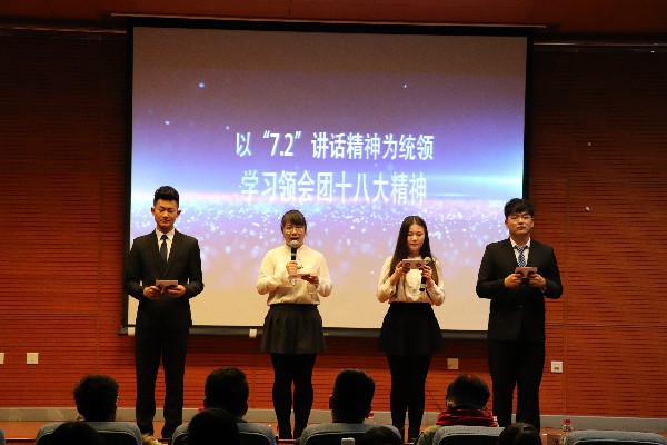 11月17日,经济管理学院团委组织部于启航四楼学术报告厅开展“以7.2讲话精神为统领,学习领会团十八大精神”为主题的团活观摩会。2018级辅导员周文博,团委常务副书记朱恩加,部分团委、学生会部长及副部长以及经管2018级全体学生参加此次观摩会。