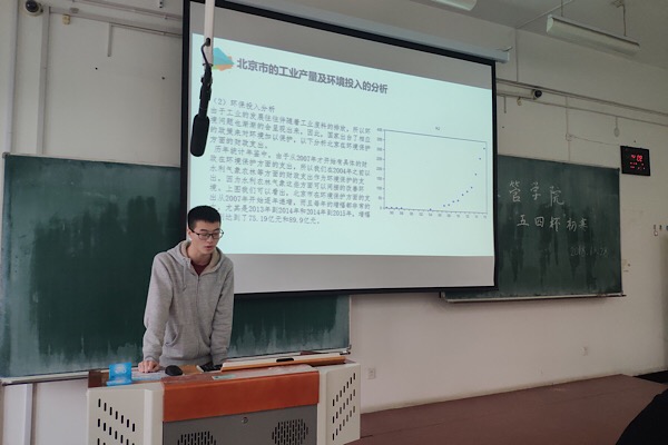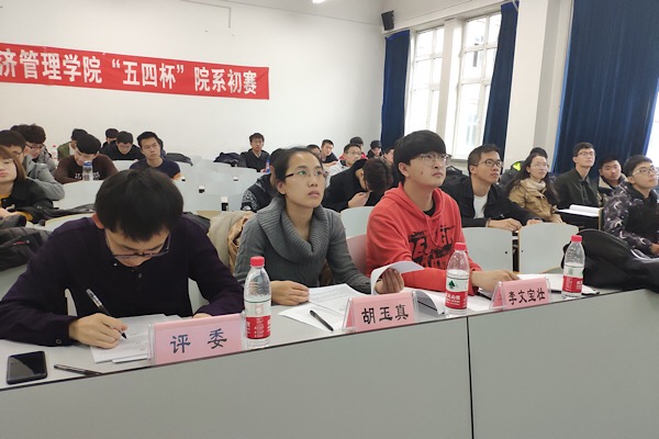 2018年10月28、29日,经济管理学院于21b教学楼212、213中教室和31号楼312室举办了 “五四杯”大学生创新创业竞赛院系初赛, 经济管理学院胡玉真老师,经济管理学院团委书记张春雨,经济管理学院团委副书记李文宝壮,科创导航员王东,柏安之,倪惠莉担任比赛评委。