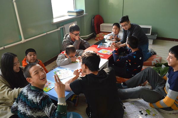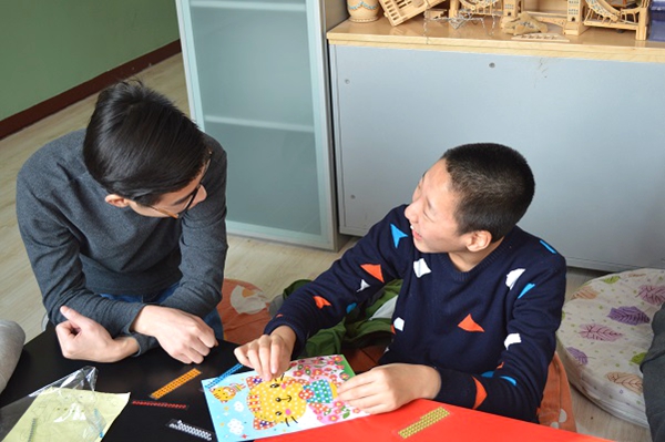 这是一节手工课,需要每人完成一幅卡通钻石画。手工课开始,老师给每个孩子发一张未完成的贴画,孩子们动手操作将不同颜色的钻石贴到指定位置。志愿者们负责协助他们完成任务,他们有不懂的时候及时解答,做错的时候及时指出。在完成贴画的过程中,志愿者们与他们聊天,关心他们的学习生活问题。课间休息,志愿者们陪伴他们一起做眼保健操。到了下课时间,孩子们基本完成了自己的任务。最后,志愿者和孩子们合影留念,此次志愿活动圆满结束。