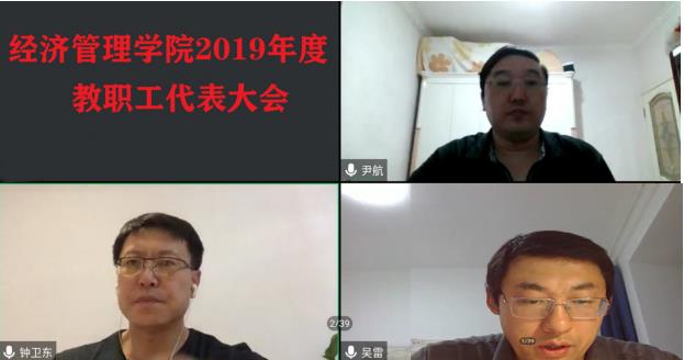 6月22日19点30分,经济管理学院召开2019年度教职工大会,受“疫情”影响,本年度学院教职工大会采取网络视频会议形式,学院全体教职工共计117人参加会议,会议由学院党委书记钟卫东主持。