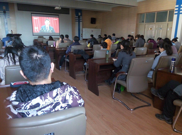 在这举世瞩目、举国欢庆的时刻,经济管理学院党委高度关注十九大,在31号楼312会议室组织师生党员代表收看十九大的开幕式盛况。在收看报告的过程中,会议室秩序井然。每个同志都聚精会神,不少同志边看边记录,不时为习近平总书记的报告所打动,所鼓舞。大家一致表示,党的十九大是在我国进入全面建成小康社会决定性阶段召开的一次十分重要的大会,是全党、全国各族人民政治生活中的一件大事,会后一定认真学习领会十九大的精神,立足工作和学习的岗位,做出更大的贡献。
