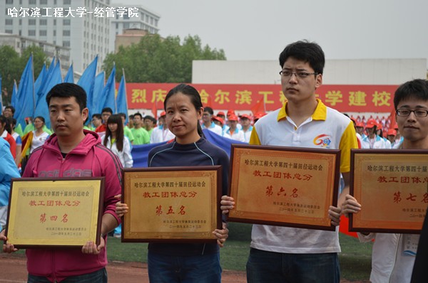 5月22日、23日,在哈尔滨工程大学北体育场内,经济管理学院教工代表队参加了校第40届田径运动会。